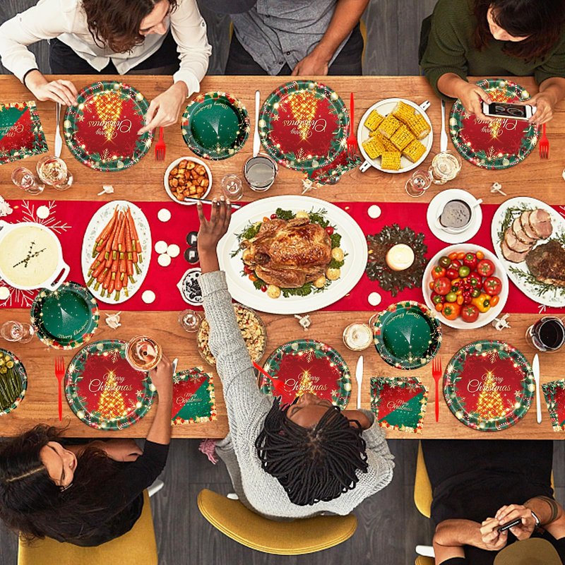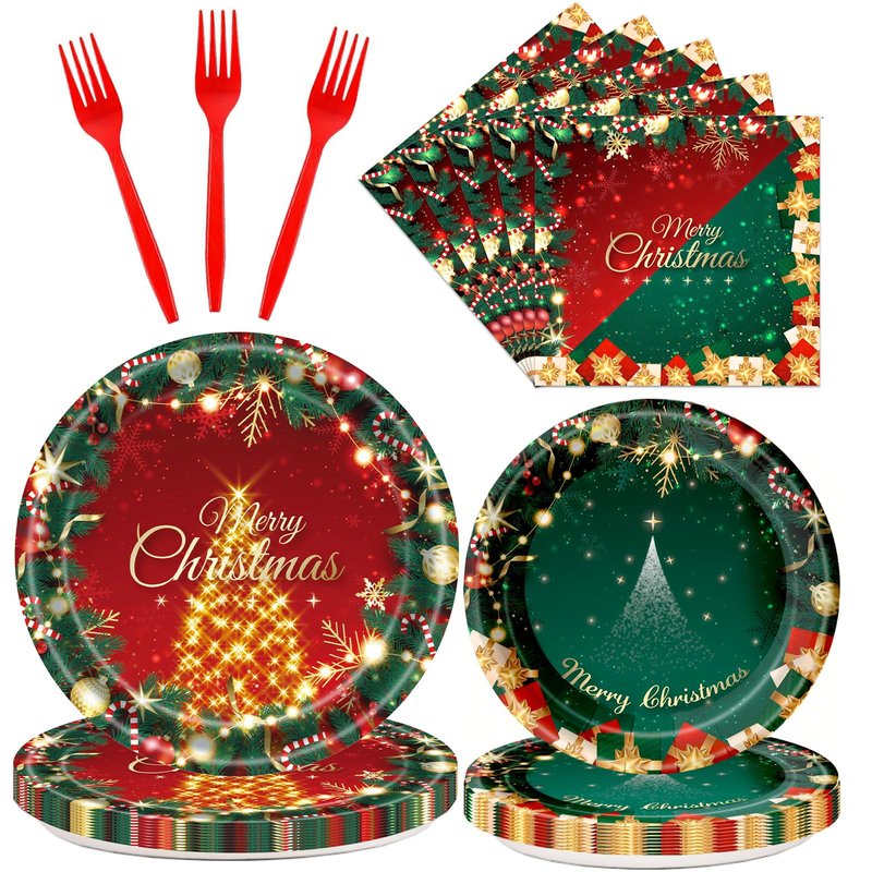 - Convenient Christmas Party Plates Set: These Xmas party kits are designed as disposable items, it drastically cuts down on your party prep time. Beautifully party decorations, and make clean-up a breeze, you only need to dispose of them after the party is over, convenient and fast. Make you fall in love with throwing parties!