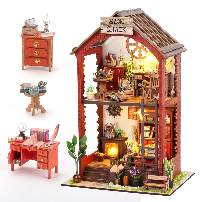 - 📚Decorate Your Book Shelf: You will feel a sense of accomplishment when you finish it.If you encounter any problems assembling this diy miniature dollhouse kit, please feel free to let us and we will provide you with a solution as soon as possible.【Note】You need to prepare the silicone liquid glue and 2 AAA batteries yourself, as air transport is prohibited.