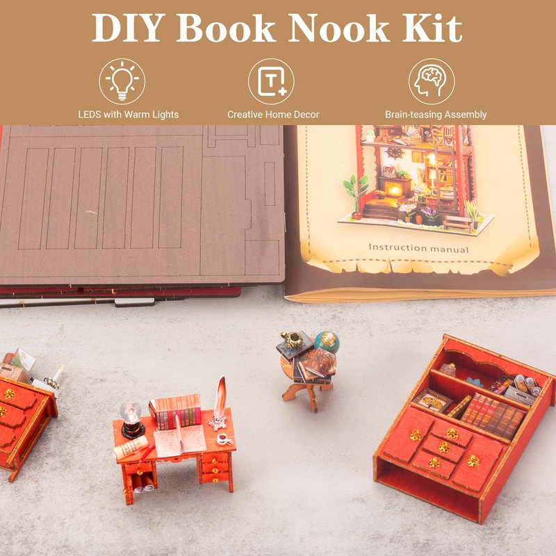 - 📚Unique Gift: No one would refuse such a creative and wonderful gift! This is more refined than an ordinary handicraft. In addition to experiencing the fun of DIY, it can also be used as an ornament. DIY book nook kit can be creative birthdays, Christmas, Valentine's Day, Mother's Day, and Father's Day gifts for adults, kids, classmates, colleagues, friends, and wives, etc.