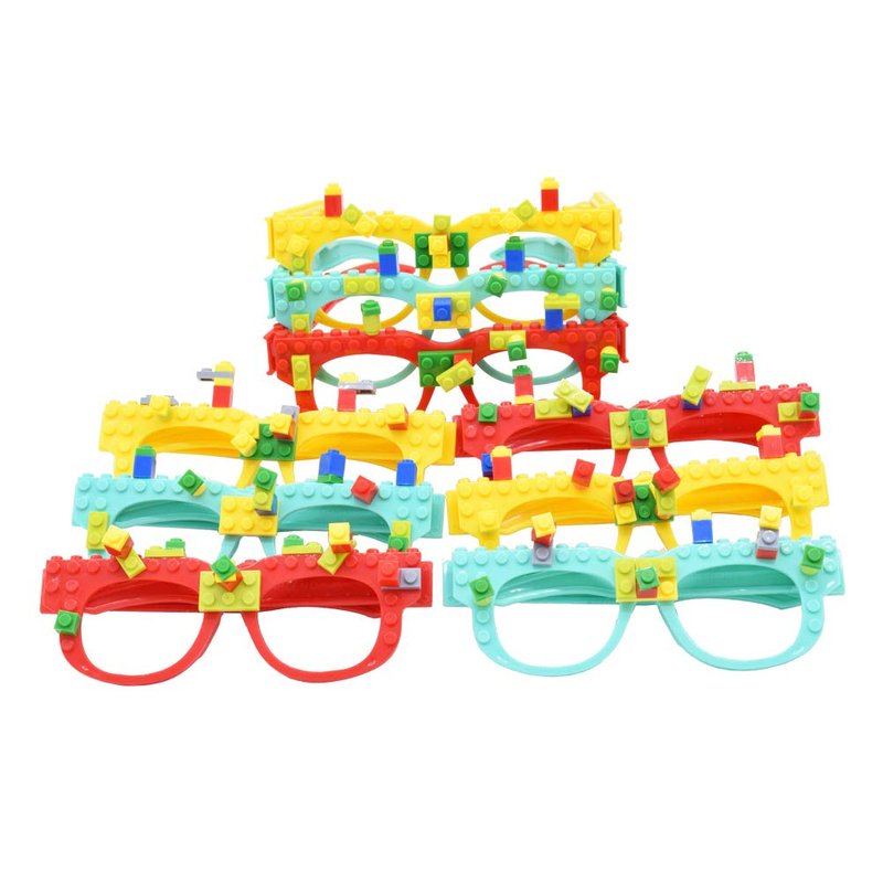 - DIY building blocks glasses set include 9pcs glasses frame and 9 packets of colored building bricks, can bring more fun to the party games for kids.