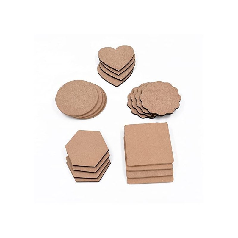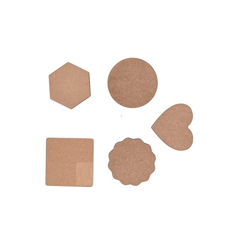 DIY Coasters - MDF Plain Wooden Coasters in Mixed Shapes - Cutouts for Painting, Wooden Craft Board for Resin Art & Fluid Art, Decoupage, Mandala Art, Pyrography - Set of 20