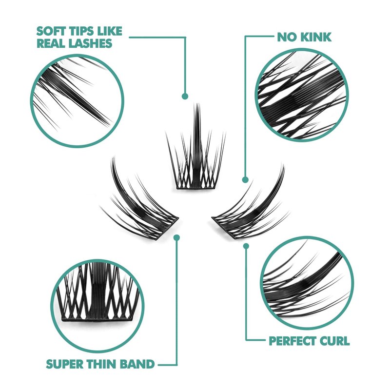 DIY Eyelash Extension, 3D Effect Glue Bonded Band Individual Lash 48 Clusters Volume Lashes Set, Home Eyelash Extension, C curl Lashes Pack 12MM-Spikes-48 Clusters