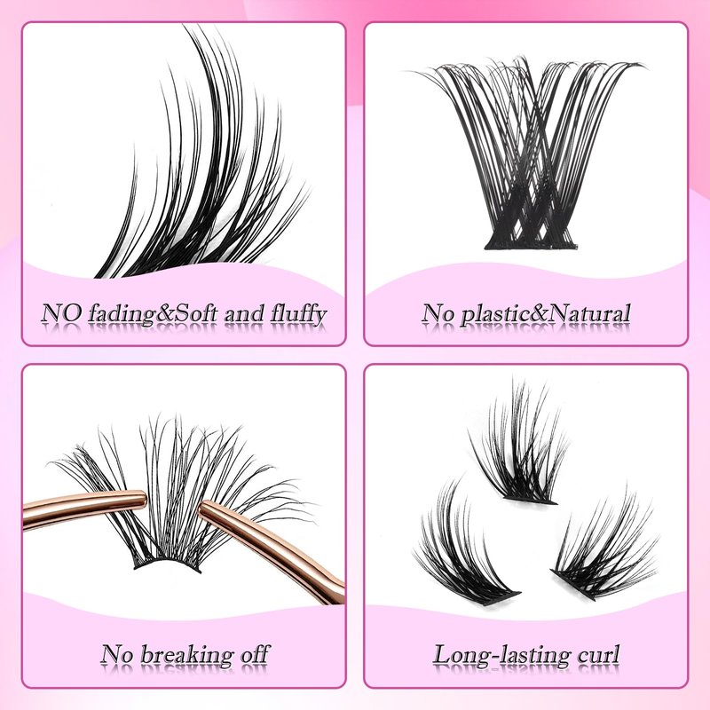 - HIGH-QUALITY FIBER - Lash cluster are made of high-quality fibers, eyelash extension clusters knot-free, vegan, cruelty-free. The eyelash cluster are soft and light, silky, glossy, and easy to apply, comfortable and non-irritating to wear. The roots of cluster eyelashes are treated with professional technology, flat, beautiful.