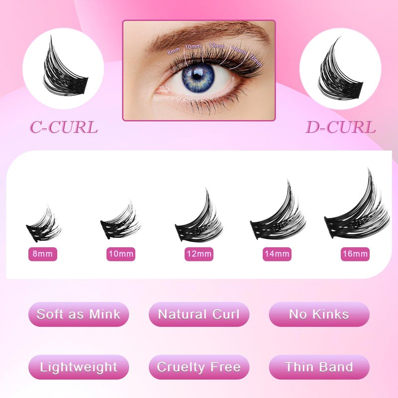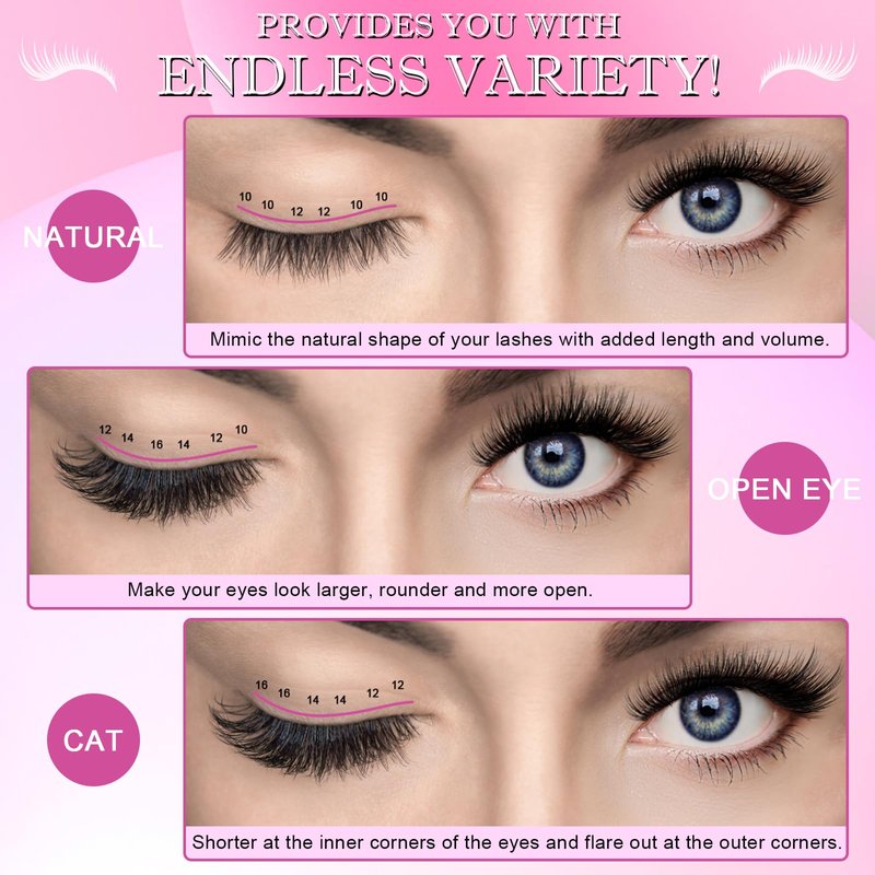 - A PERFECT GIFT - Diy lash clusters also makes a nice and thoughtful gift. The DIY cluster individual lashes that no beauty can refuse. Perfect not only for professional, makeup salon, cosmetic school, but also a makeup artist and personal home use for party, appointment or daily use.