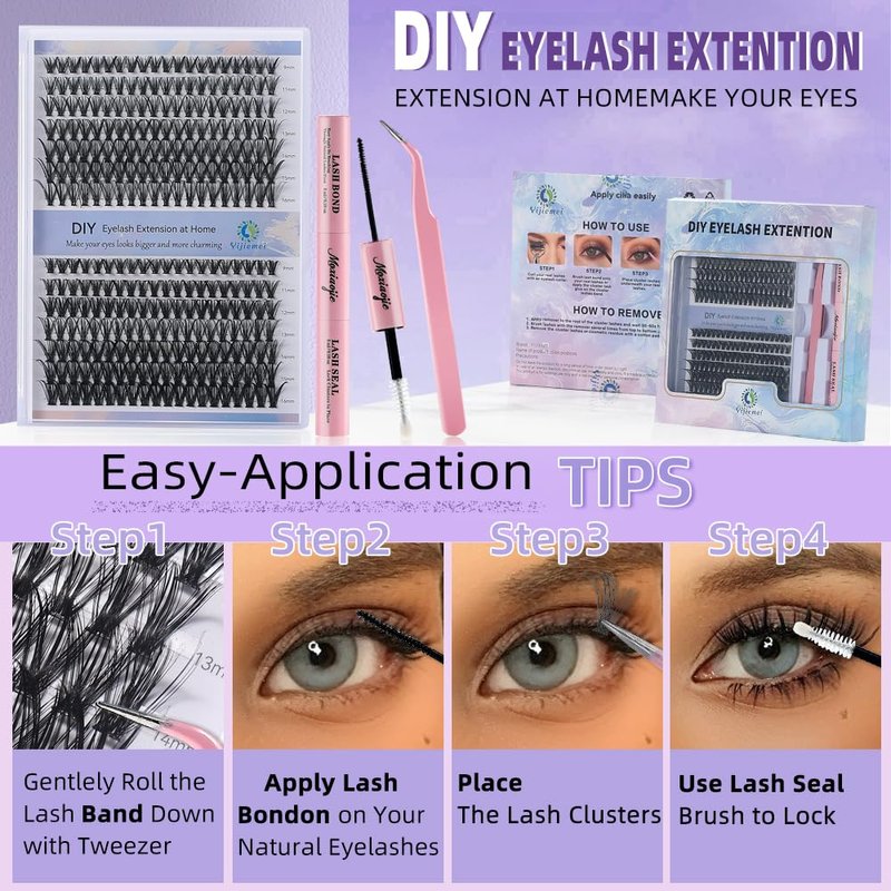 - DIY Eyelash Extension Kit: Our Eyelash Cluster Kit offers 280 Clusters lashes (40D&50D, 0.07D 9-16mm), 1 lash bonding and sealing, tweezers, and 1 self-adhesive pearl sticker, with our DIY Lash Extension Kit;Achieve a natural, extended look;It provides everything you need at home; Enjoy the convenience of creating flattering lashes and save time and budget at the lash extension salon.