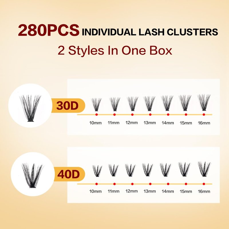 - 【Different Look Styles】: Create customizable lash looks with our individual lashes clusters in various lengths and volumes (10-16mm, 30D, 40D,50D,60D,80D). This lash cluster pack is versatile and can be used for a variety of occasions, whether it's a night out with friends, a special event, or even a day at work. Achieve your desired look quickly and easily!