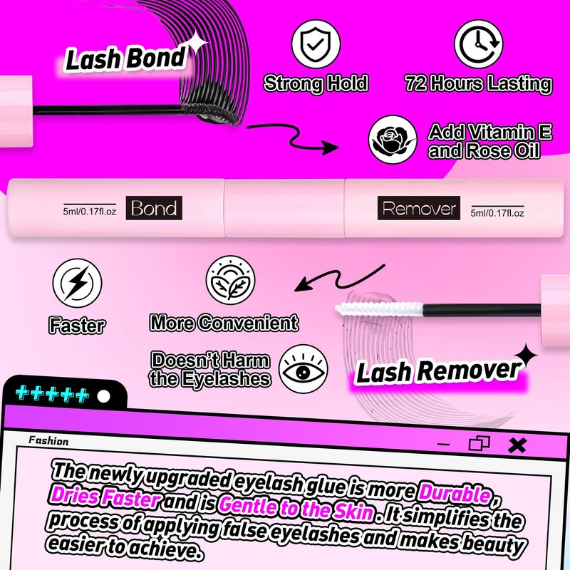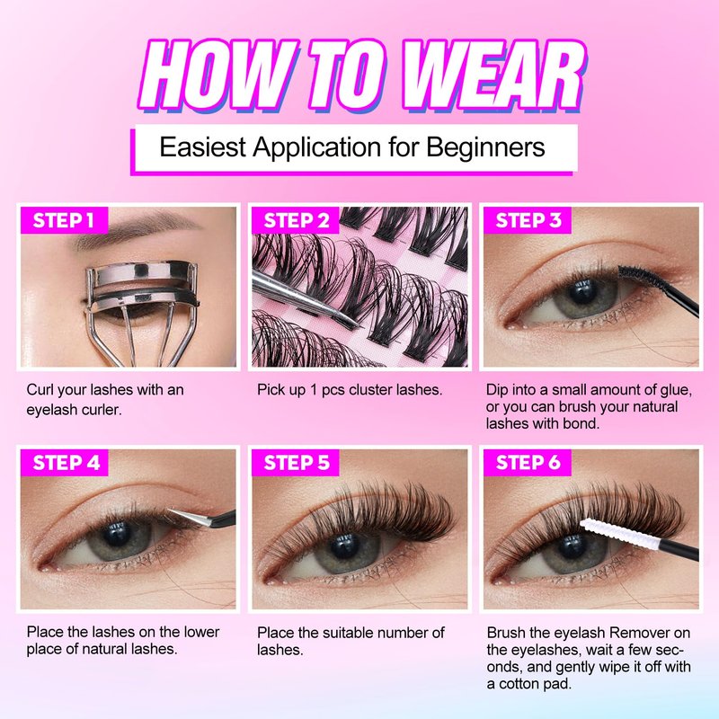 - Application Tips - First, use the lash bond to gently brush the bottom of your lashes, and then use lash tweezers to stick the individual lashes under the brushed eyelashes, beautiful makeup is complete!
