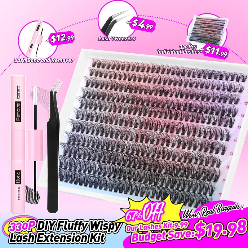- DIY Lash Extension Kit - You will get a 330pcs individual lashes,an lash bond and lash remover, and an eyelash tweezers. Pleell's eyelash Extension kit is the most practical and cost-effective lash extension set.