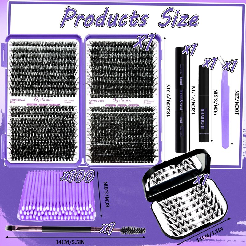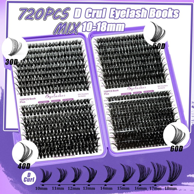 - Perfect lash extension kit:This kit includes 720D crul eyelash books,60 eyelashes (included in the mirror box),a total of 780 eyelashes,1 eyelash bonding and sealing,1 eyelash removal,as well as 1 eyelash tweezers,1 double headed eyelash brush,and 100 mini applicators.It is suitable for beginners who want an effective eyelash string kit,simple and portable to create eyelashes at home.