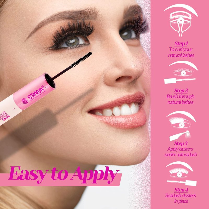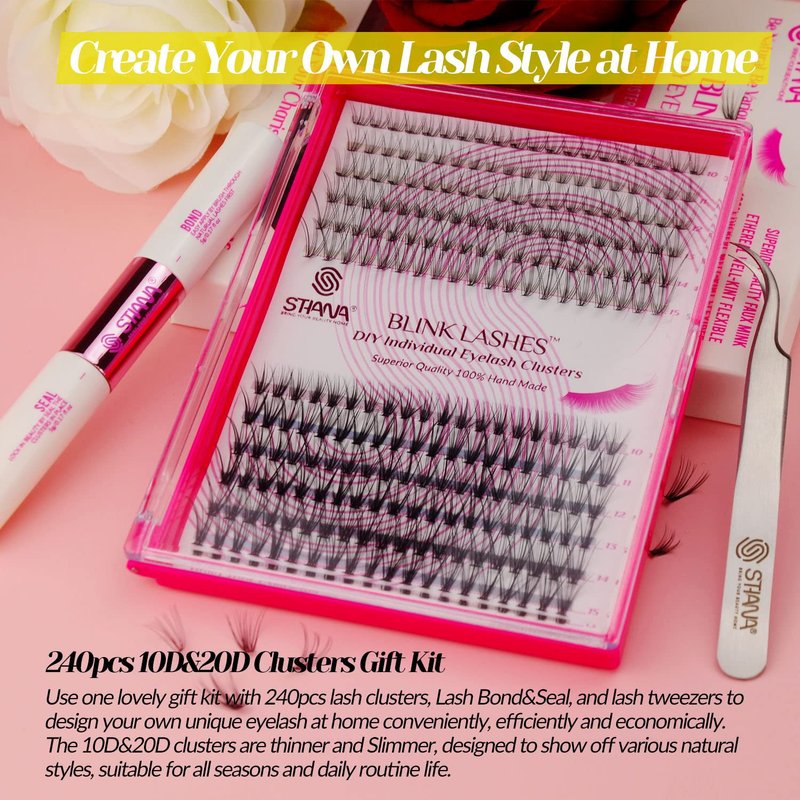 Introducing the STHANA DIY lash extension kit, the ultimate solution for creating your own unique eyelash at home. Our eyelash extension kit includes everything you need to achieve a salon-quality lash extension look, including premium quality faux mink lash clusters, advanced formulated lash bond and seal, and professional craft lash tweezers. Our lash clusters D curl are made from the finest quality, cruelty-free materials and are soft, lightweight, wispy, fluffy, knot-free and matte dark. Our specially formulated lash bond is strong hold, fast-drying, waterproof, and long-lasting. It is gentle on your natural lashes, and the lash seal is to prolong the lasting time and protective from damage of oil and sweat, so you can wear your extensions with confidence. Our STHANA DIY individual lashes kit includes easy-to-follow instructions, making the application process a breeze, even for beginners. Whether you're searching for "DIY lash clusters kit", "lash extension kit", “eyelash extension kit at home”or "individual eyelash kit", our product is the perfect solution. STHANA DIY lash clusters kit is perfect for those who want to save time and money by doing their lash extensions at home. You can create endless possibilities for different styles, from a natural to a glam look, and empower your creativity. And with our lifetime money-back guarantee, you can purchase with confidence. Order now and discover the benefits of our STHANA DIY lash extensions kit!