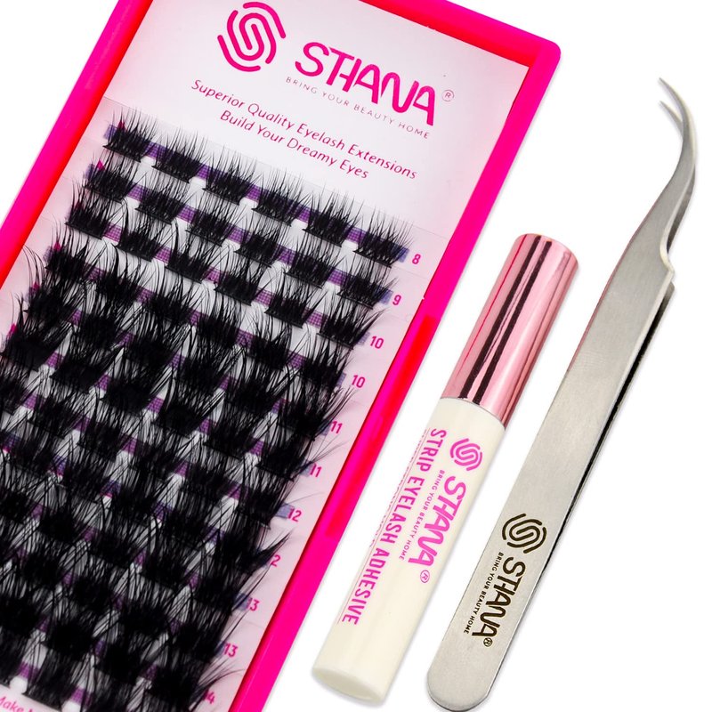 Introducing the STHANA DIY lash extension kit, the ultimate solution for creating your own unique eyelash at home. Our eyelash extension kit includes everything you need to achieve a salon-quality lash extension look, including premium quality faux mink lash clusters, specially formulated lash glue, and professional craft lash tweezers. Our lash clusters D curl are made from the finest quality, cruelty-free materials and are soft, lightweight, wispy, fluffy, knot-free and matte dark. They are reusable, so you can create your perfect natural look time and time again. Our specially formulated lash glue is strong hold, fast-drying, waterproof, and long-lasting. It is gentle on your natural lashes, so you can wear your lash extensions with confidence. Our STHANA DIY individual lashes kit includes easy-to-follow instructions, making the application process a breeze, even for beginners. Whether you're searching for "DIY lash clusters kit", "lash extension kit", “eyelash extension kit at home”or "individual eyelash kit", our product is the perfect solution. STHANA DIY lash clusters kit is perfect for those who want to save time and money by doing their lash extensions at home. You can create endless possibilities for different styles, from a natural to a glam look, and empower your creativity. And with our lifetime money-back guarantee, you can purchase with confidence. Order now and discover the benefits of our STHANA DIY lash extensions kit!