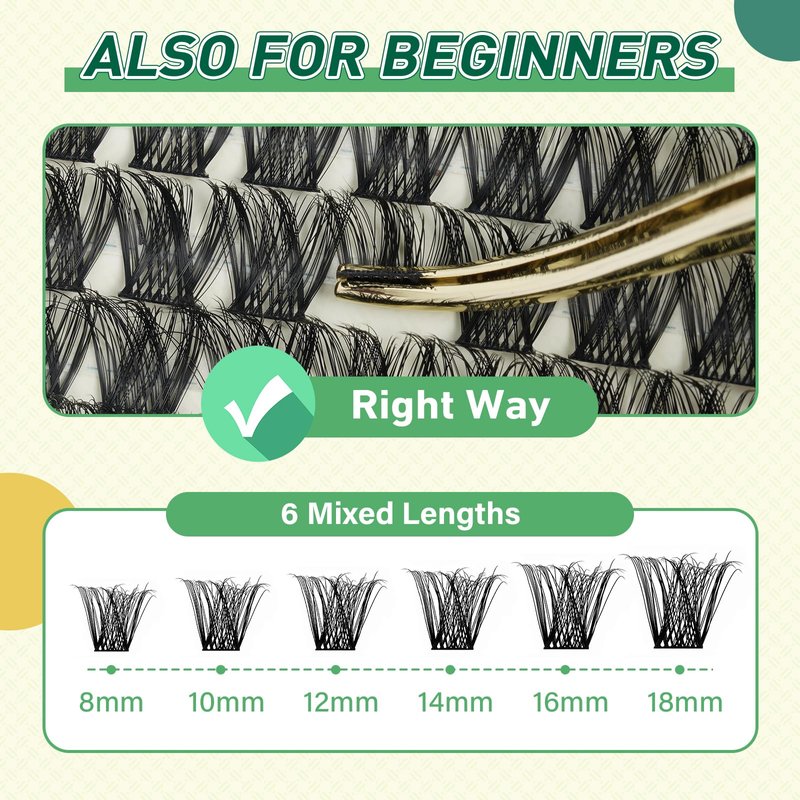 - 【Beginner-friendly Cluster Lash Kit 】The KEYYOU all-inclusive kit provides everything you need for effortlessly stunning lashes. From 144 thin band Cluster Lashes to the Lash Bond and Lock, Cluster Lash Remover, Applicators, lash brush and cleaning pads, we've got you covered from start to finish.