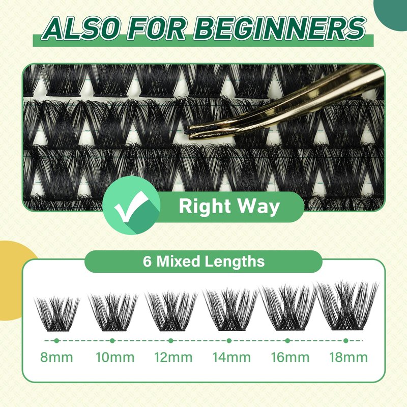 - 【Beginner-friendly Cluster Lash Kit 】The KEYYOU all-inclusive kit provides everything you need for effortlessly stunning lashes. From 144 thin band Cluster Lashes to the Lash Bond and Lock, Cluster Lash Remover, Applicators, lash brush and cleaning pads, we've got you covered from start to finish.