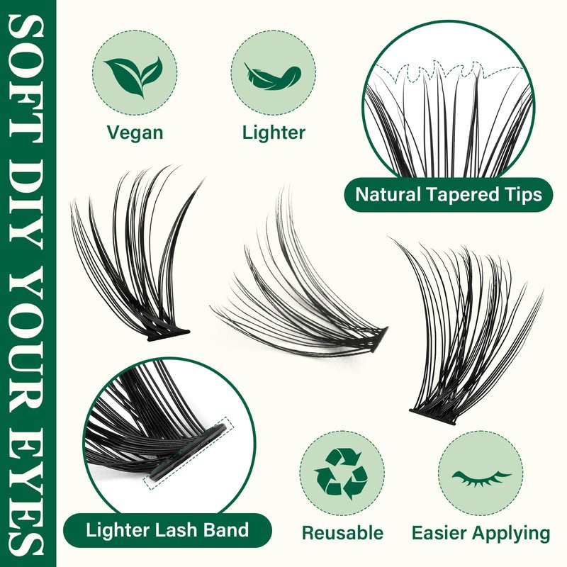 - 【High Quality Individual Lashes】Experience lightweight comfort with our soft fiber lash clusters. They're cruelty-free, irritation-free, and offer a stunning look.