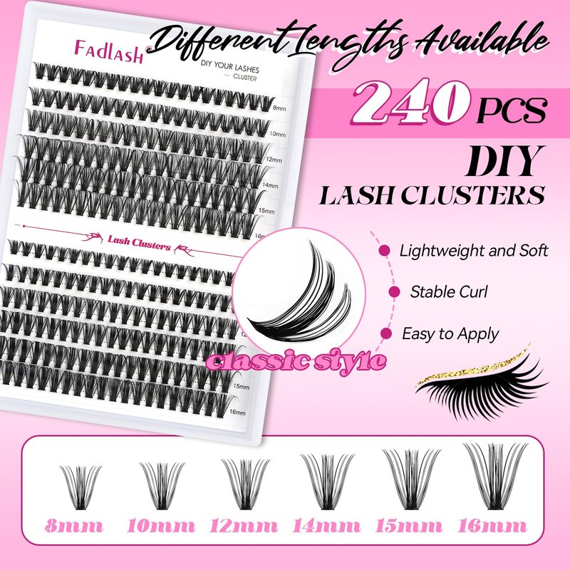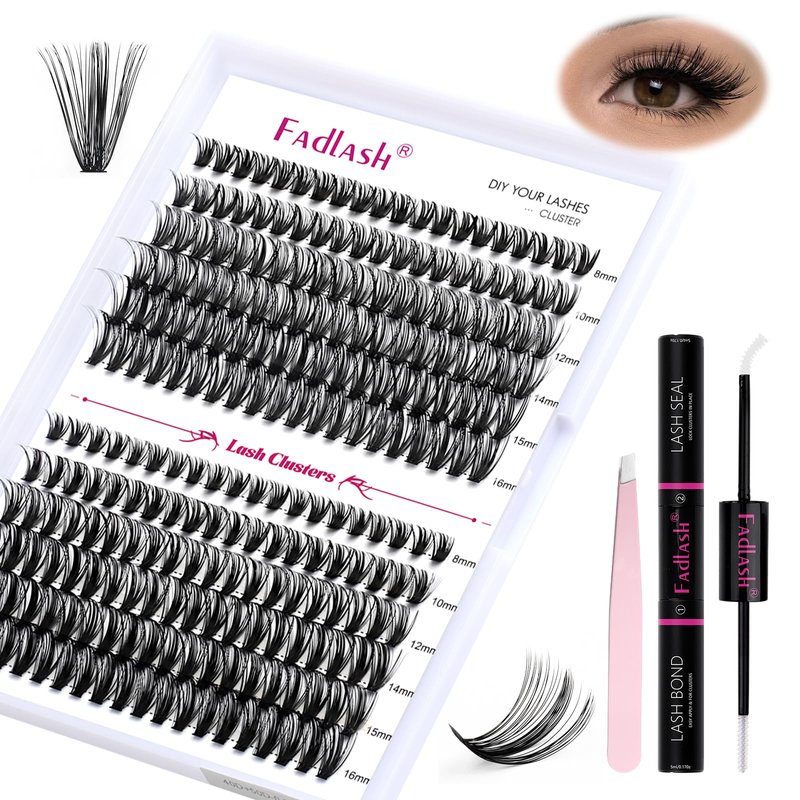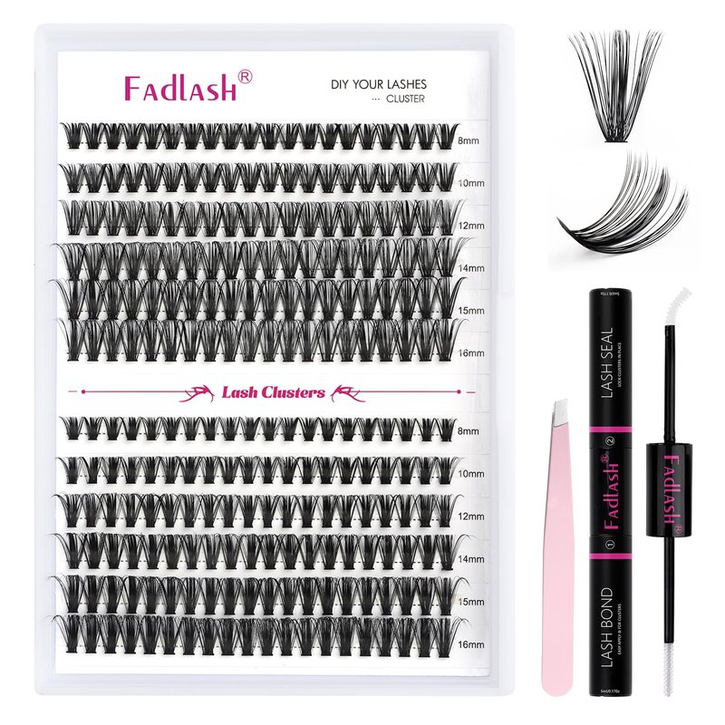 - FADLASH DIY lash extension kit: FADLASH cluster lashes with mixed length, lash bond and seal, lash tweezer in the eyelash extension kit. All the steps is just in this lash clusters kit. Also the lash kit wiil save your money and time.