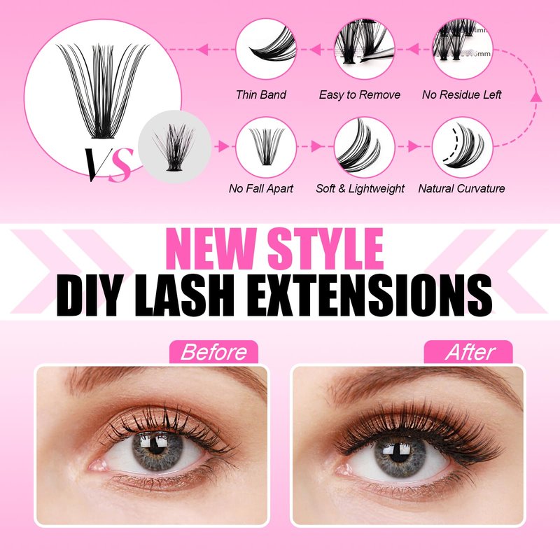 DIY Eyelash Extension Kit: The DIY lash extention kit includes cluster lashes, 2 in 1 lash bond and seal 10ml and one lash tweezer. You can get all the products you need for DIY lash extensions with time and money saving.