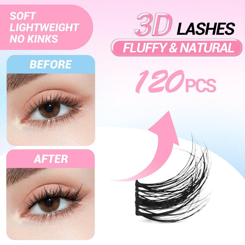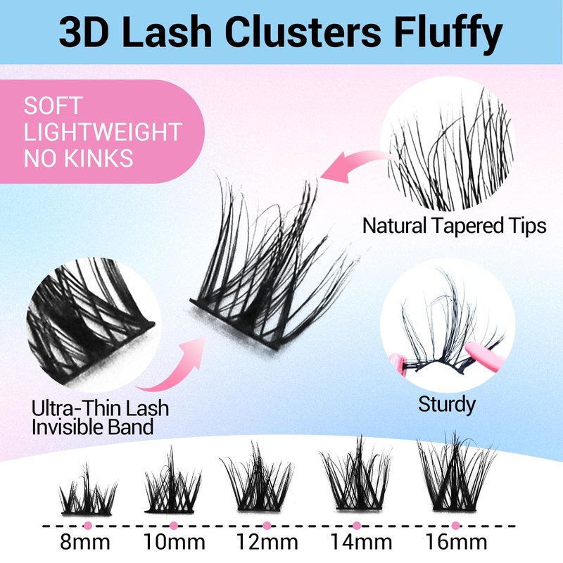 - Wispy and fluffy eyelash cluster extension: Our 0.07mm synthetic fiber eyelash clusters deliver a natural, fluffy 3D faux mink look without causing irritation or allergies. The 0.3mm superfine band ensures a comfortable fit, and the durable design means the clusters won't fall apart, wispy, fluffy and lasting up to a week with proper care.