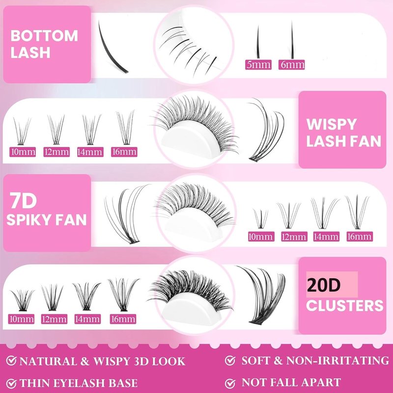 - 【Unleash Your Inner Lash Queen】Embrace the versatility of Kimeyelashes cluster lashes, offering a spectrum of styles and lengths. Customize your look according to your desires, effortlessly crafting your dream lashes from the comfort of your home. Bid farewell to salon visits and hello to savings in both time and money.