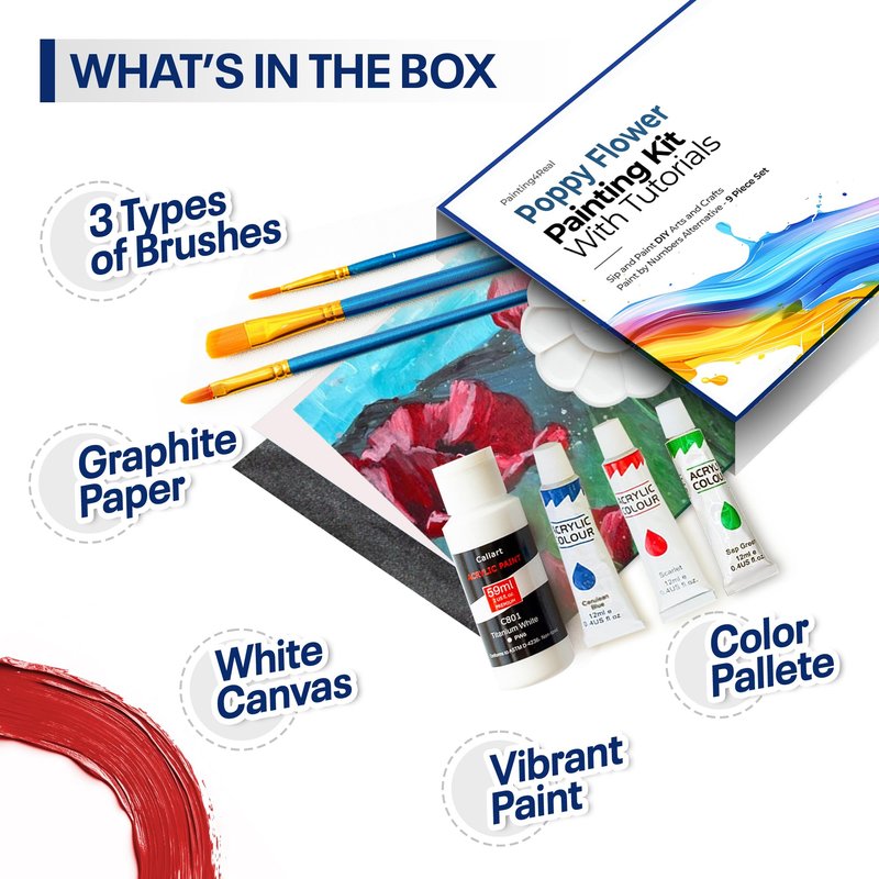 DIY Painting Class Kit for Adults: Learn to Paint These Poppy Flowers with Video Tutorials – How to Paint with Acrylics – Painting & Art Supplies – 9 Piece Acrylic Paint Set