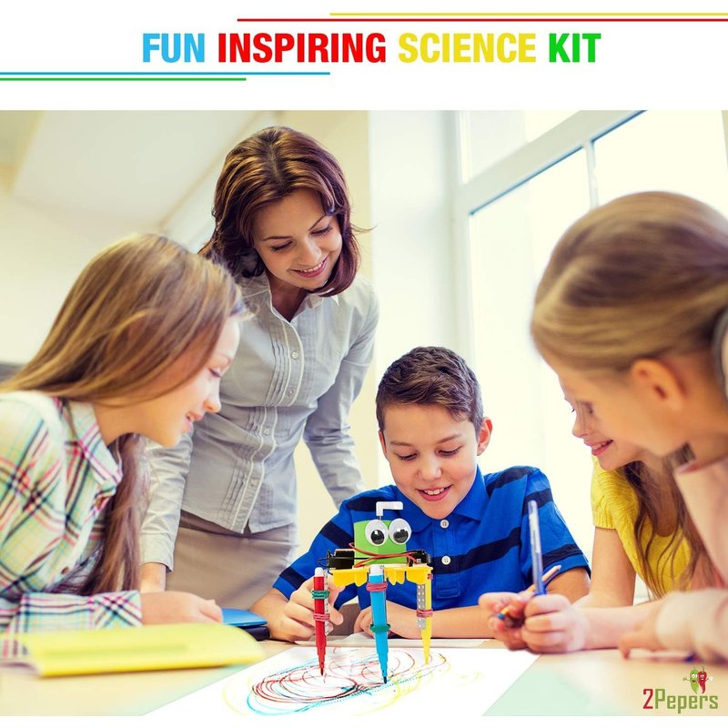 THE NEXT GENERATION OF SCIENCE TOYS This STEM kits set has it all! 3 different kinds of robot games for kids 8-12. Unique, special and more exciting than any other toy. The ultimate combination of both fun and STEM activities. 3 DIY ROBOTIC KITS A ROBOT THAT DRIVES USE THE REMOTE CONTROL AND DRIVE THE DC MOTOR VEHICLE BACK AND FORTH! A ROBOT THAT DRAWS CREATES SKETCHES AND GRAFFITI! A ROBOT THAT MOVES FUNNY CHANGING THE RELATIVE ANGLES OF THE FRONT WHEELS TO GET DIFFERENT MOVING EFFECTS! PERFECT GIFT RECOMMENDED FOR ANY OCCASION Are you trying to find a fun, unique and inspiring gift for kids age 8 years and up? Let us help you! 2Pepers DIY electric motor robotics for kids are exactly what you're looking for. A complete educational robot set with 3 different kits of robot parts, designed gift box, screwdrivers that fit small hands and detailed step-by-step instruction manuals. Great as a birthday gift, Christmas gift, craft for boys, teens gift, top presents for boys and girls, Easter gift, Valentine's day gift for kids and so much more. What's in the box? 3 DIY mini motor Robotic kits. Well written instruction manuals. Screwdrivers Gift package.