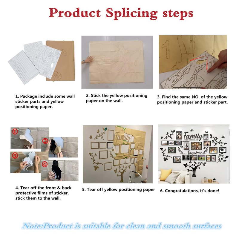- You will receive a box of acrylic sticker parts. Please splice all parts together according to manual, and then you will get the most perfect family wall decor. ( You can view the video on the left to understand the product splicing process )