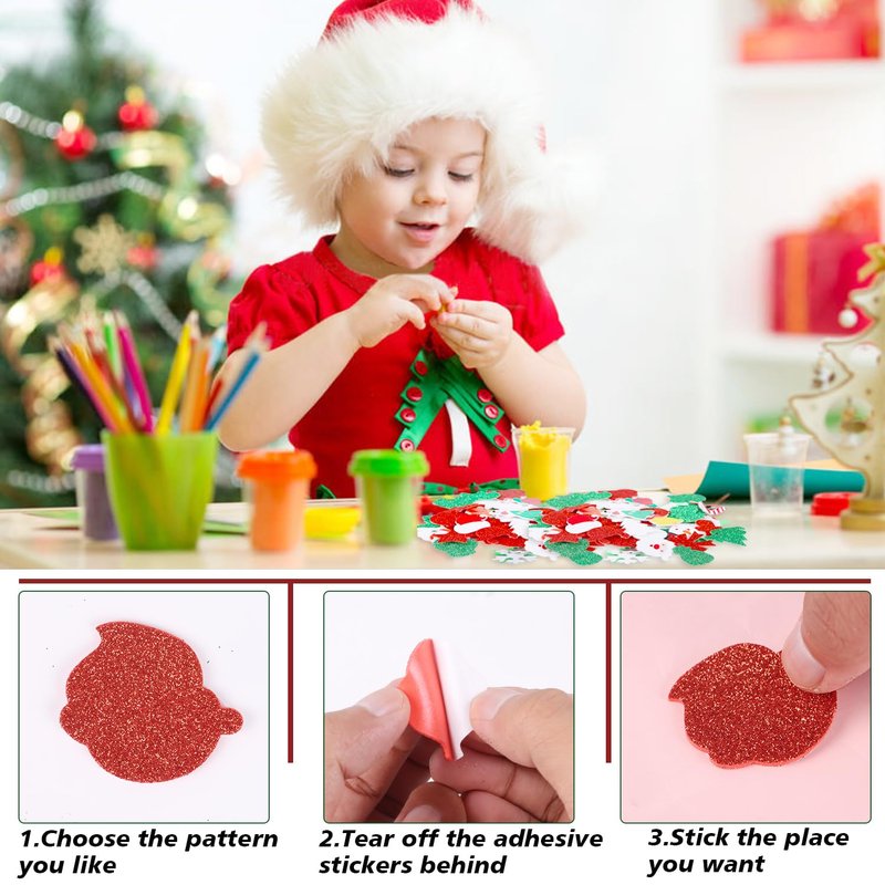 - Self-adhesive - Each foam stickers are self-adhesive, just peel off the protective film on back, then you can stick them anywhere you want. These Christmas craft foam stickers can stick firmly and won't fall off easily. Great for Xmas DIY Stocking craft ornaments