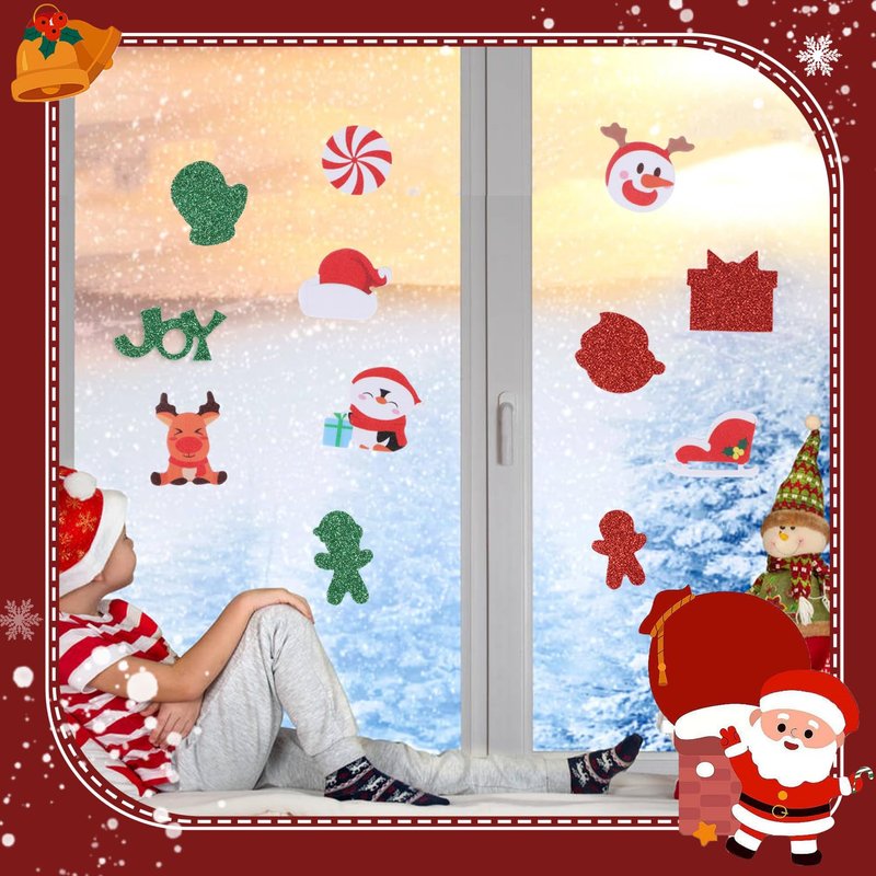 - Premium Material - Christmas glitter stickers are made of durable quality EVA material with strong stickiness, glitter powder not fall off, no fade, lightweight and safe, self adhesive, easy to peel off and paste