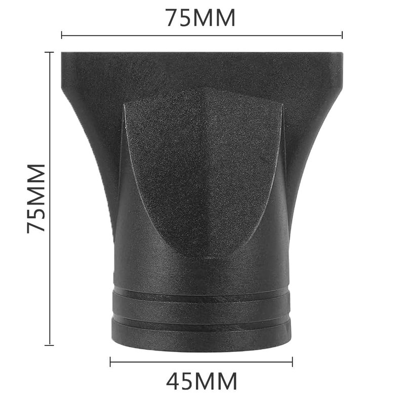 - Package content: 2PCS black hair dryer nozzle, size 75mmX75mmX45mm, suitable for hair dryers with round outlet outer diameter 45-46mm.
