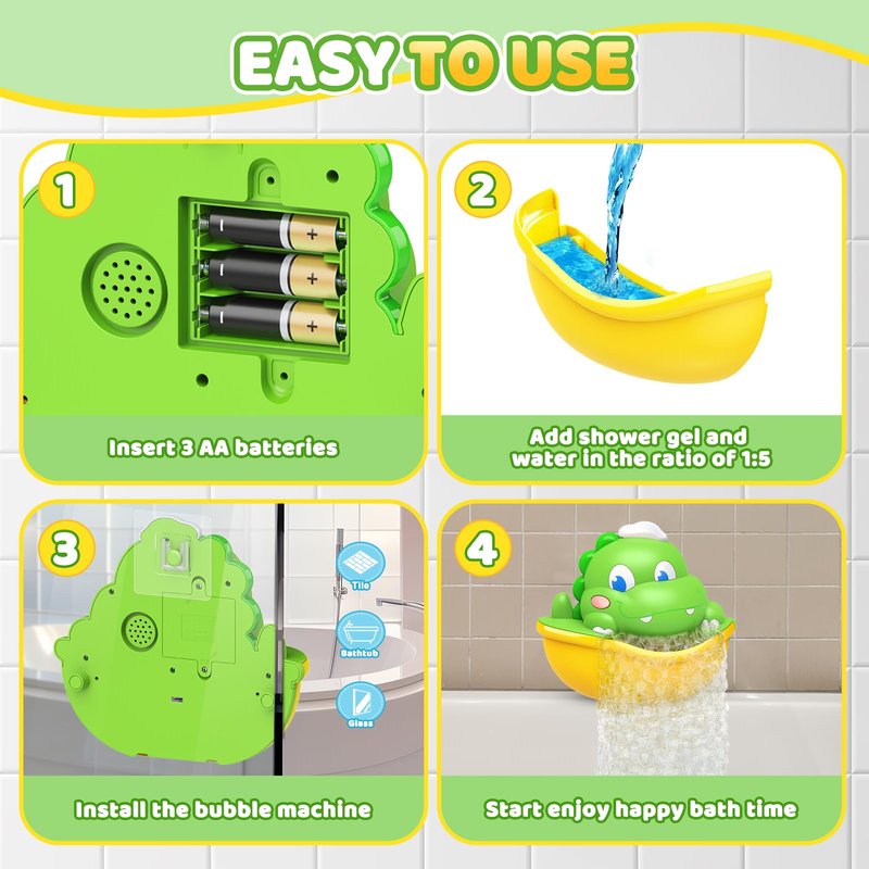 Overall, the light-up dinosaur bath bubble machine is a fantastic Bath Toys for Kids Ages 1-3 that will add a bit of magic and excitement to any child's bath time. With its easy-to-use design, quality construction, and fun features, it is a must-have accessory for any parent looking to make bath time more enjoyable for your children