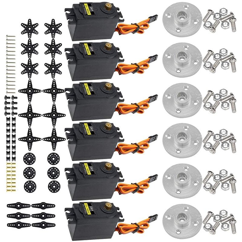 - The kit included MG996R servos, for the joint bears larger force. And come with 6*25T metal horns mounts
