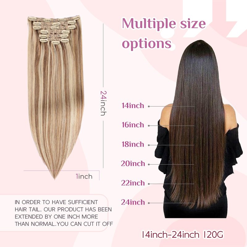 - 【Human Hair Clip In Extensions - Specification】7pcs/set & 120 grams/set.Hair extensions real human hair have 14 inches/16 inches/18 inches/20 inches/22 inches/24 inches respectively, If it is to increase hair volume it is recommended to purchase 1-2 packs.If it is to extend hair, it is recommended to purchase 3-4 packs and create a charming effect.--human hair clip in extensions.Hair Extensions Real Human Hair.Human Hair Clip In Extensions.hair extensions real human hair.