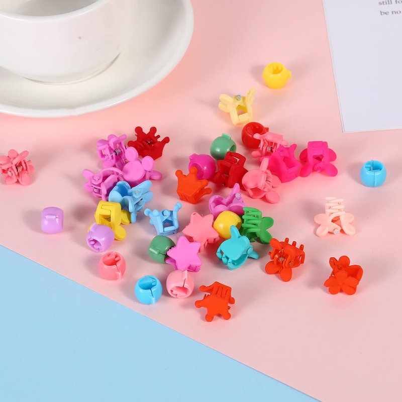 DIYOVNAK 100 Pieces/Pack Colorful Bead Mini Hair Claw Clips Clamps Small Plastic Hair Claws for Girls Women Accessory (CL220613-A 100pcs mix)