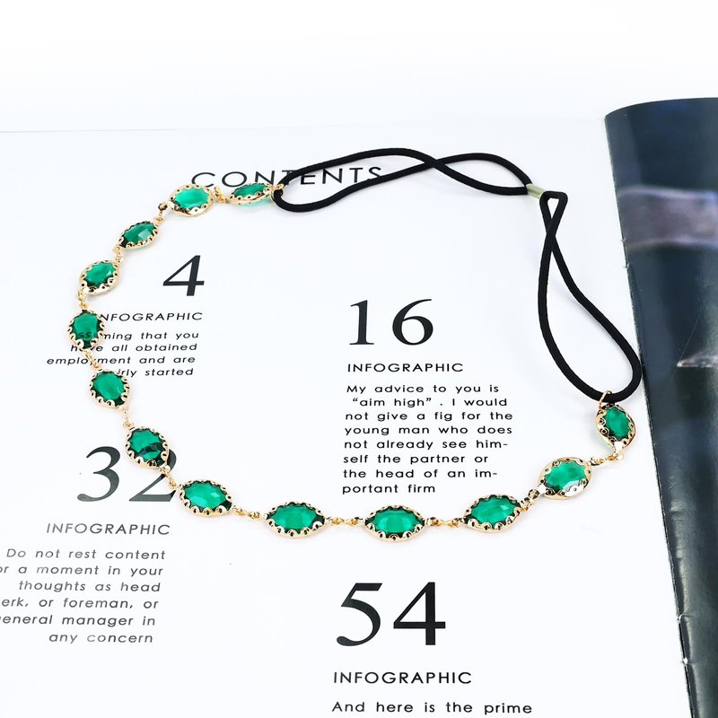 -Main Color: 2pcs head chains in gold and 2pcs in emerald green.