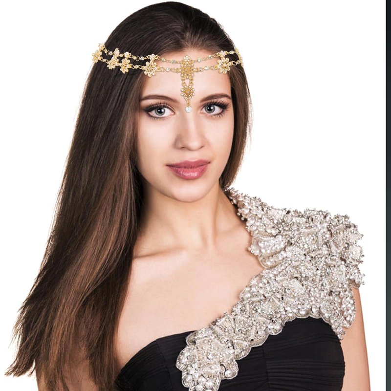 - Material Quality: Crafted from premium high-quality alloy, these gold metal headbands for women are beautifully embellished with sparkling rhinestones and glitter crystals. Each piece is designed to be rust-free and skin-friendly, ensuring comfort for extended wear. With their durable construction, these jewelry head chains for women not only enhance your style but also stand the test of time, making them a fantastic addition to your accessory collection.