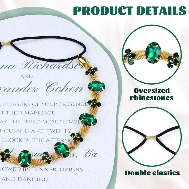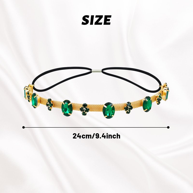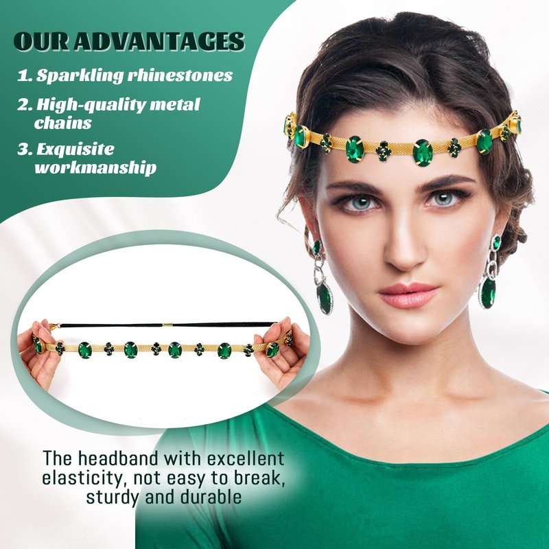 - Elegant Color Scheme: This set includes two stunning gold metal headbands for women and two eye-catching emerald green pieces. The combination of gold and green makes for a striking palette that can complement a variety of clothing styles and themes. Whether you prefer a touch of luxury or a vibrant pop of color, these rhinestone head chains can enhance your overall look for any occasion.