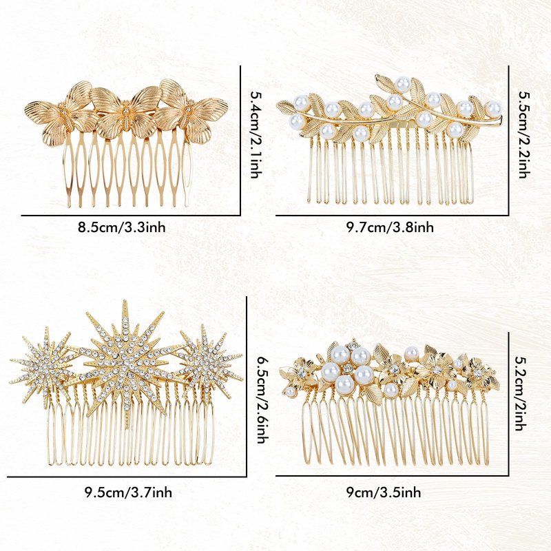 - Size: Available in a range of sizes and styles, these gold metal hair side combs cater to diverse styling needs. The comprehensive size options ensure a personalized and secure fit, offering the versatility required to effortlessly adorn a variety of hair styles, providing both practicality and aesthetic finesse.