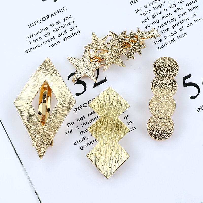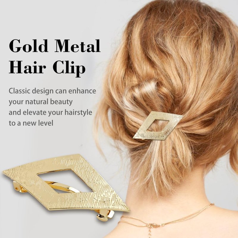 - Stylish and Fashionable Design: These gold metal hair clips have a simple yet fashionable geometric design. The smooth and glittering surface gives them a modern and eye-catching look. The strong automatic spring clip ensures easy application and a secure grip, keeping your hair in place all day long.