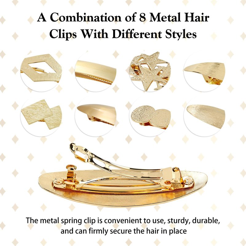 Package includes: 8pcs gold metal hair clips in the pacakge.