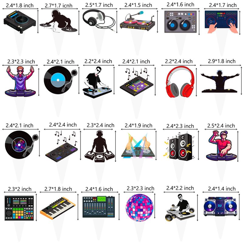 - You will get:48Pcs DJ cupcake toppers are included in this package, 24 DJ styles and each of 2pcs. Suitable size for most cupcakes and birthday cakes. Surprise your guests with a one-of-a-kind DJ birthday party atmosphere