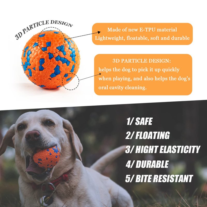 - DURABLE DOG FETCH BALLS:This dog ball has a good bounce, the surface of the dog ball is covered with most of the 3d raised particles, which helps the dog to pick it up quickly while playing, and also helps to clean the teeth. Keep your dog energetic and healthy every day. It's a great interactive dog ball for indoor and outdoor play.