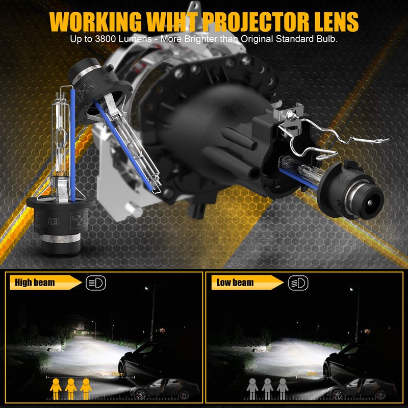 • 100% Quartz Anti-UV Glass, Excellent in Performance. Up to 3800 Lumens - More Brighter than Original Standard HID Bulb.