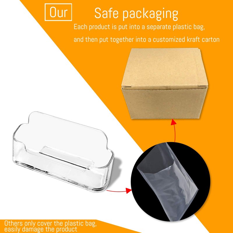 - Safe Packaging and Multiple Packs: DMFLY Clear business card holder Packing - Each product is put into a separate plastic bag, and then put together into a customized size kraft carton, not easy damage the product. Multiple Packs - can be used by yourself, or send to friends, family, and colleagues are all good choices. As a boss, this is also a good gift for employees.