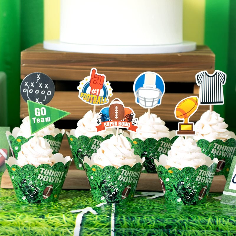 - ✔COMPLETE FOOTBALL PARTY KIT - This set includes 36 balloons, 34 stickers, 30 plates, 26 cupcake toppers, 15 napkins, 12 bottle labels, 12 food tent signs, 11 swirl decorations, 1 banner, and 1 tablecloth, making it hassle-free and convenient for you to organize a football-themed party in no time!