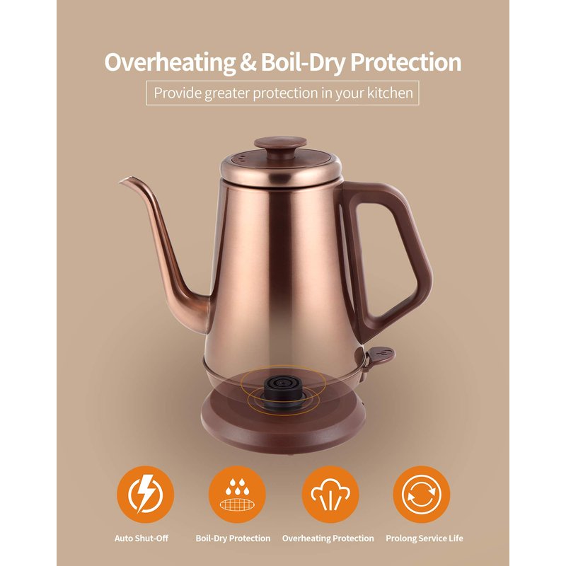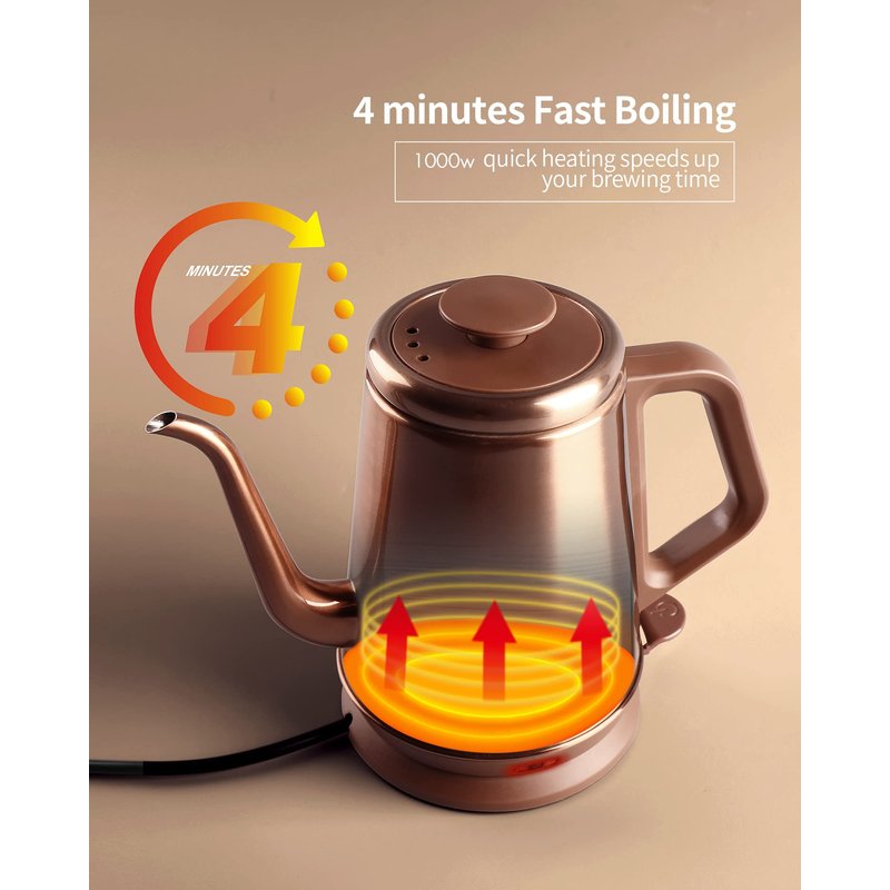 DmofwHi 1000W Gooseneck Electric Kettle (1.0L),100% Stainless Steel BPA Free Tea Kettle with Auto Shut - Off Protection, Pour Over Coffee Kettle -Copper