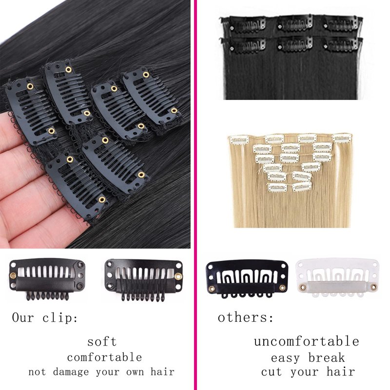 - ☘【Easy to Put or Remove】5 minutes wear. It has 4 different width pieces and total 16 clips which is easy to suit your needs in different parts of the hair. Clip hair extensions is easy and quick to add volume and length. Anyone can do it. The stainless steel clip is never rusty and easy to clean.