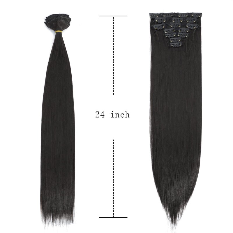 DMStarcky Straight Clip In Hair Extensions 24 Inches for Black Women, 7 Pieces/Set Hairpieces Heat Resistant Synthetic Fiber Double Weft Hair Extensions Natural Black Color