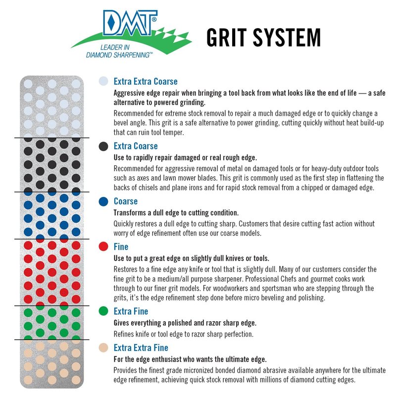 - Fast & Easy: Micronized monocrystalline diamonds are securely bonded; The dots keep the diamond surface clean for fast and efficient honing of all materials; Sharpen dry or with water