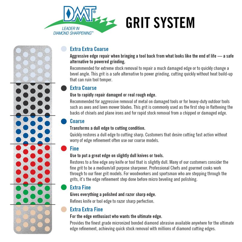 - Sharpens knives faster than conventional stones with DMT's micronized monocrystalline diamond surface