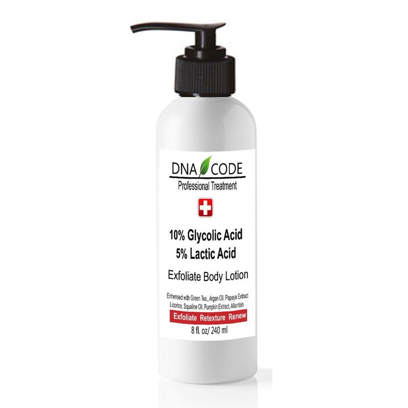 DNA CODE Skin Care Magic Body Lotion-Best 10% Glycolic 5% Lactic Acid Acid Exfoliating Body Lotion w/Green Tea, Argan Oil, Papaya, Licorice.
