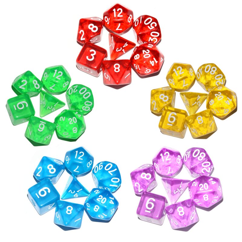 - 35pieces rainbow dnd polyhedral dice set with D20*5, D12*5,D00*5, D10*5, D8*5, D6*5, D4*5.